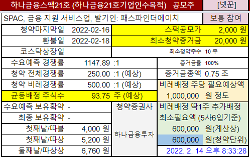 @2022-02-08 첫날경쟁률 62.34:1, 상장일확정 2022-02-18