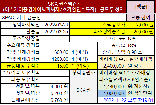 @2022-03-07 #에스케이증권7호스팩 이름으로 상장함.