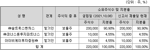 @2022-01-30 발기인: 솔트룩스벤처스 90.9%, 코너스톤투자파트너스 4.55%