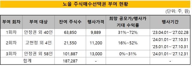 노을은 바이오(제약·헬스케어 포함) 신규 상장사들과 비교하면 공모가와 스톡옵션 행사가의 격차는 크지 않다. ([넷꾼] 상장후 스톡옵션을 바로 사용하지않는다는 의미입니다.)