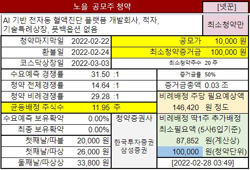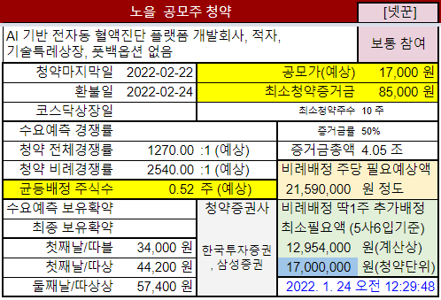 혈액만으로 병을 진단하는 기기를 만드는 회사 노을 공모주청약 정보입니다.