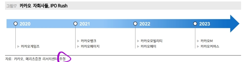 위 라인업 보고서 이후 카카오페이가 주관증권사 선정 등 IPO 속도를 내서 2021년상반기 목표로 변경됐습니다.