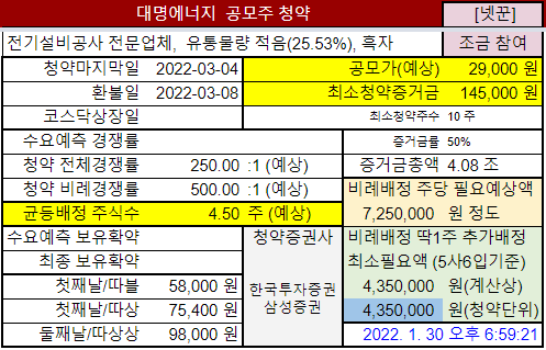 전기설비공사 전문업체 대명에너지 공모주청약 정보입니다. 발전소 여러곳을 관여하고 있습니다.