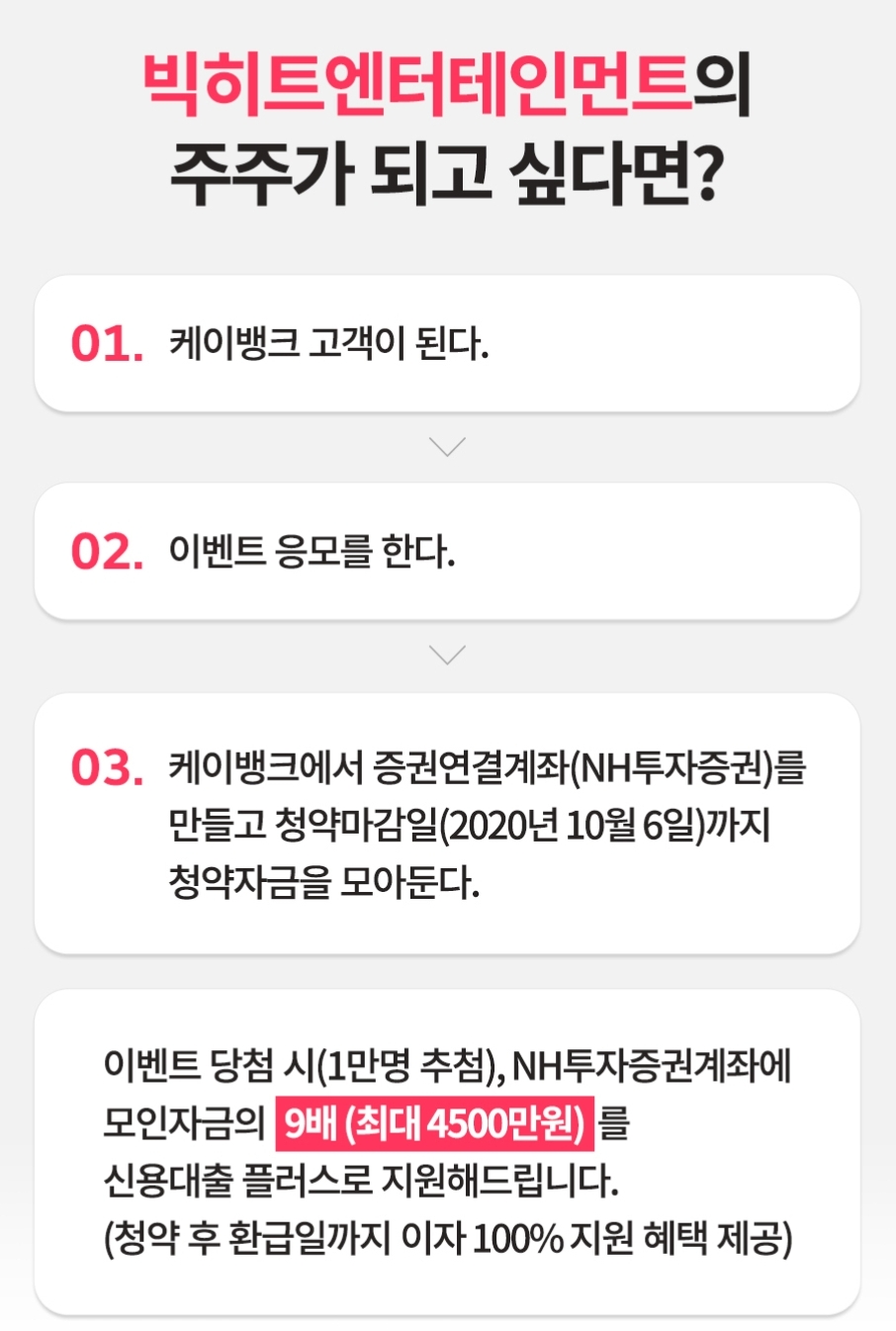 케이뱅크 앱에서 새로 NH 증권연결계좌를 10월4일까지 만드세요.