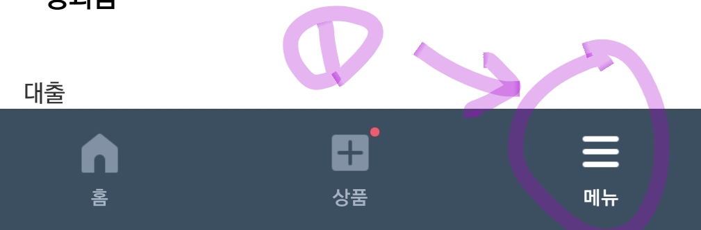 케이뱅크 앱 화면 아래 오른쪽 메뉴선택