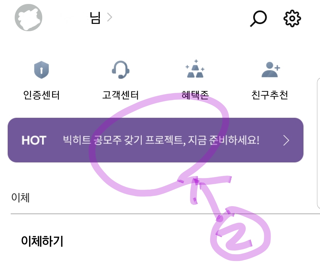 화면상단 배너가 바뀌는데 빅히트배너 나올때 클릭