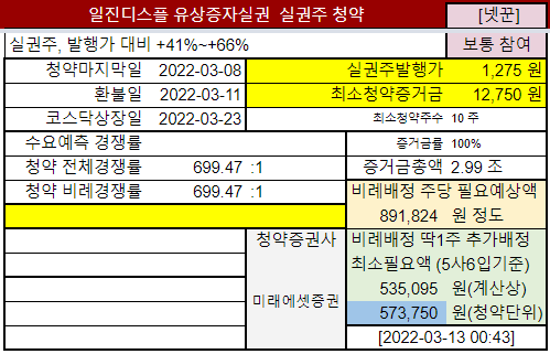 @2022-03-15 #공구우먼 경쟁률낮아 장중 청약포기함 : "최소" → "안함"