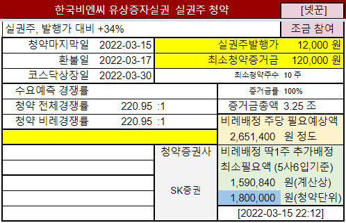 @2022-03-11 #공구우먼 수요예측결과 낮아 포기하려다가 공모가를 많이 낮춰서 최소청약만 하기로 결정. 넷꾼 참여도 낮춤: "조금" → "최소"