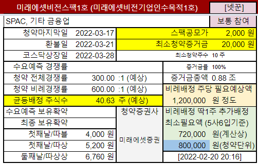 @2022-02-25 #미래에셋비전스팩1호 일정미룸: "3.16~3.17목" → "3.28~3.29화" (상장일은 3.28→미정으로 변경됨)
