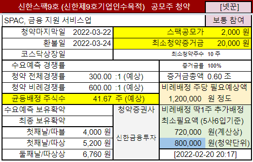 @2022-03-13 [3월10일 공시]로 #신한스팩9호 일정연기됨: 3.21~3.22화 → 4.18~4.19화