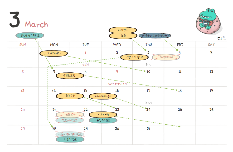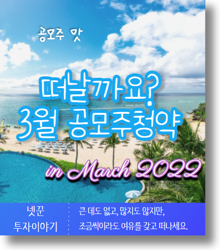 1월에 대형 공모주청약이 있은 뒤 조금씩 공모주 규모가 줄어들어 3월은 거의 쉬는 기간인 듯 보입니다.