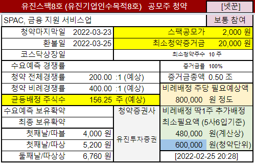 | 유진스팩8호 | 38 | 3.22~ 3.23수 |