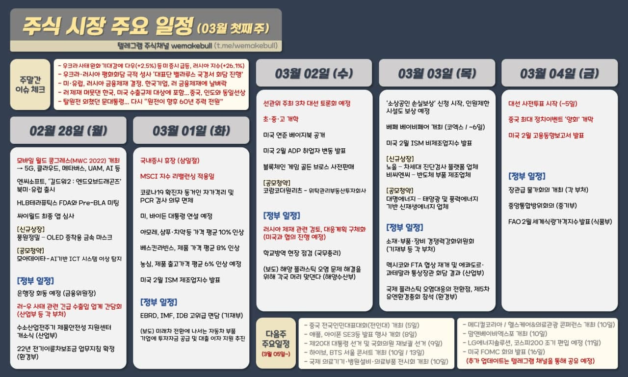 ◆ wemakebull님 증시일정