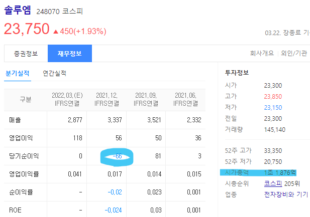 솔루엠 !! 공모주청약때 공부하면서부터 유심히 봐왔고, 상장이후 재매수해서 장기투자하려다가 21년말 적자전환의 쓴맛을 보고 손절했었던 종목입니다. 그 이후로도 많이 하락했고 주가가 어느정도 박스권에 갖혀있네요. 반등할 때가 되지않았을까하는 생각이 좀 드네요.