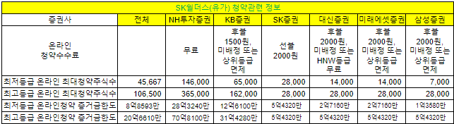 ㆍ청약증권사: NH투자증권 KB증권 SK증권 대신증권 미래에셋증권 삼성증권
