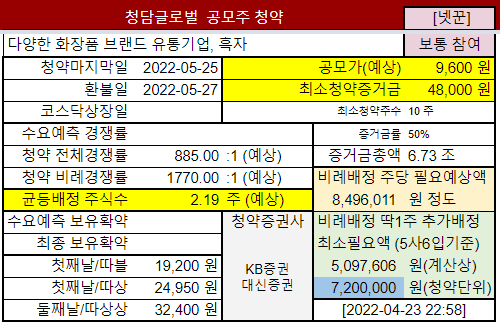 @2022-05-24 청약첫날 전체경쟁률 6.49:1 (KB증권 6.63:1, 대신증권 6.17:1)