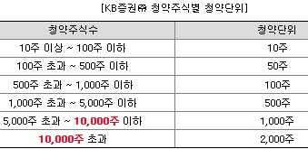 ㆍ일반투자자에게 배정되는 전체주식 비율을 늘렸지만 구주매출빠져 주식수는 조금 줄었음 (전체: 1,585,422→ 1,522,004주, KB증권 1,109,795→1,065,403, 대신증권 475,627→456,601)