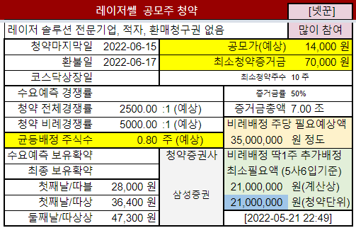 @2022-06-14 청약첫날 전체경쟁률 108.54:1 @오후10시반 (삼성증권 청약첫날은 오후10시까지 청약받음)