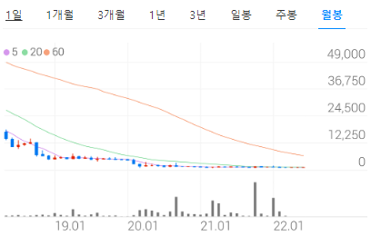 #크루셜텍 월봉 차트: 현재 거래정지상태로 피눈물나게 했던 기업인데 이 회사 임원들이 레이저쎌 임원이라는 점 주의하세요.