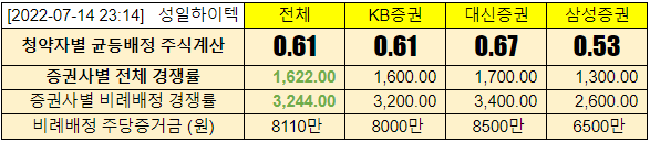 | 증권사별 비례배정 경쟁률 | 171.24 | 224.3 | 124.22 | 136.54 |