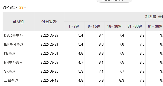 증권사에서 부족한 현금으로 레버리지 투자 방법중의 하나인 신용매수는 위험하지만, 필요할 경우 써야겠죠. 초보는 금지. 신용매수 이자율 비교하는 방법은 금융투자협회 비교 공시를 보는 방법이 제일 좋습니다.
