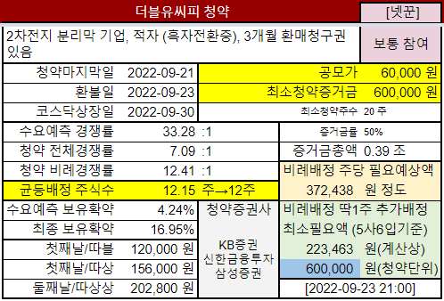 | P | KB증권 신한금융투자 삼성증권 | 2차전지 분리막 기업, 적자 (흑자전환중), 3개월 환매청구권 있음 | ||||