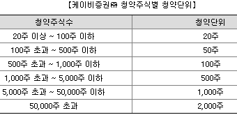 균등배정 예상 KB증권 13.21주, 신한금융투자 15.69주, 삼성증권 6.69주
