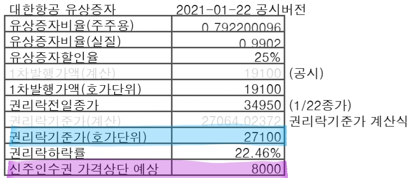 @2021-01-22 권리락당시 27100원에서 1차발행가 19100원을 뺀 8000원 예상했지만,