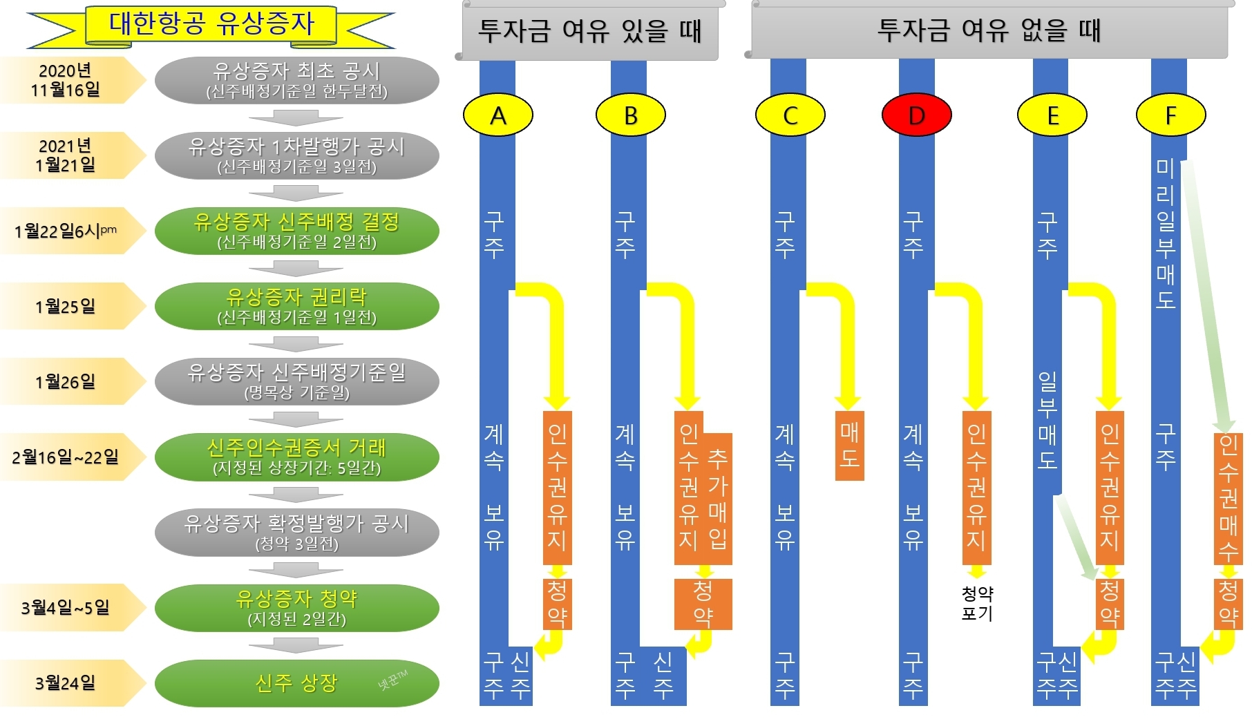(A) 유상증자 권리얻은뒤 신주인수권증서팔지 않고 유상증자 청약신청한다.