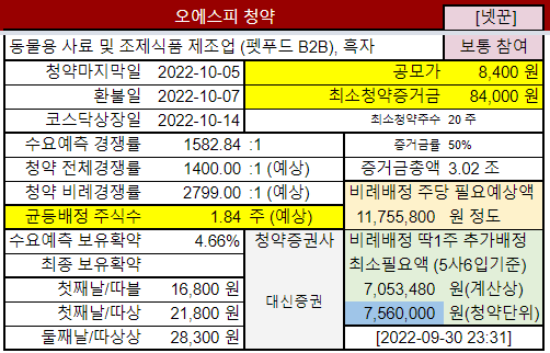 펫푸드의 B2B 업체 유사기업이 없는 점과 시장 성장성을 좋아보입니다만 시장반응이 어떨지 궁금하네요.