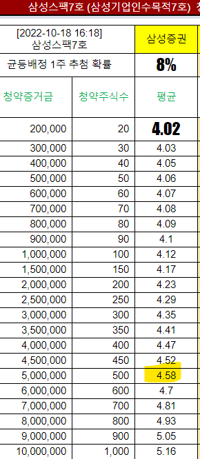 @2022-10-18 청약마감 전체경쟁률 430.03:1, 균등배정 4.08주
