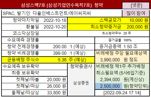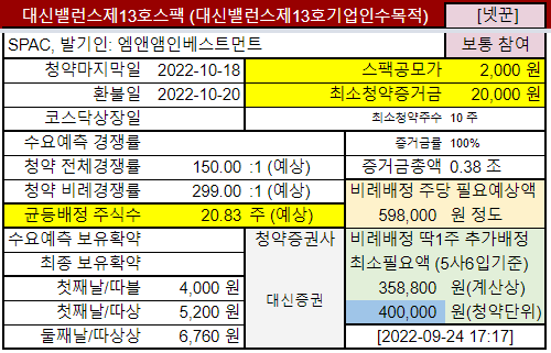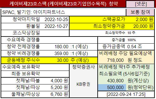 @2022-09-24 스팩공모가 만원 첫스타트, 두번째검토, 예상치 조금 낮춤