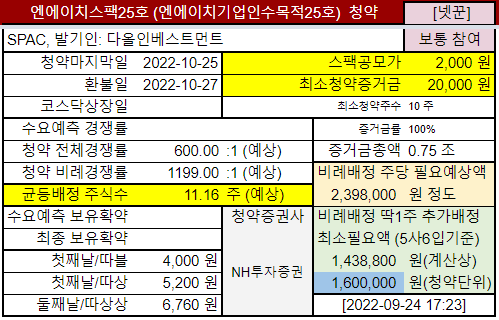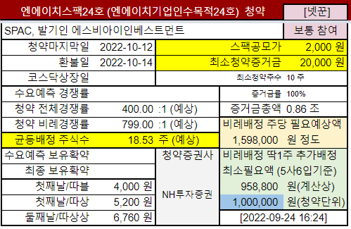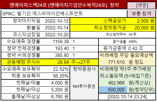 | 엔에이치스팩24호 | 38 | 10.11~ 10.12수 |