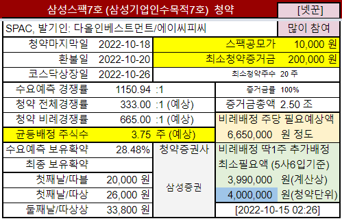 @2022-09-24 첫검토, 지난 삼성스팩의 따상 기대에 부응할 듯