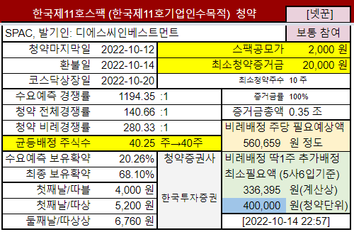 @2022-10-12 청약마감 전체경쟁률 140.66:1, 균등배정 40.25주