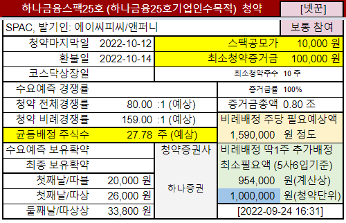@2022-09-06 #하나금융스팩25호 청약일정연기: "9.15~9.16금" → "10.11~10.12수"