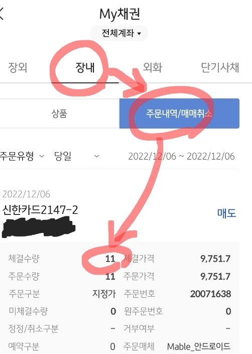 - 회사채 "신한카드2147-2" 9792 매수 → 9693 매도 (11주=11000원어치 사셔야함)