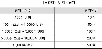 - 일반공모수량 줄임 (개인배정물량: 55만주 → 45만주)