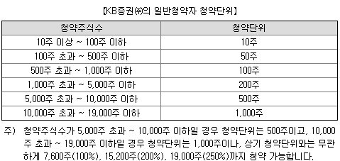 | 증권사 | 배정주식수 | 청약한도 | 구분 |