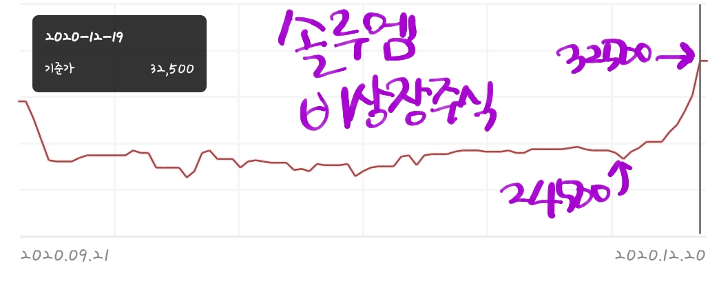 솔루엠 비상장주식 상장전날 주가가 41300원이었는데 이때 사신 분들은 물려있겠네요.