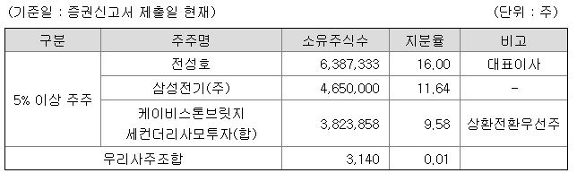 최대주주(대표이사)가 16.73%, 특수관계인 8.26%, #삼성전기 11.64%