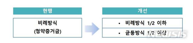 기존엔 비례배정 방식으로만 배정을 했으나, 청약자에게 모두 골고루 배정하는 물량을 50%이상, 비례방식으로 배정하는 물량을 50% 이하 배정하도록 되어있습니다.