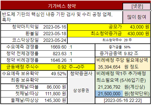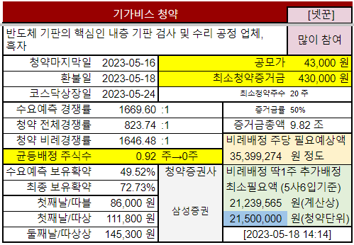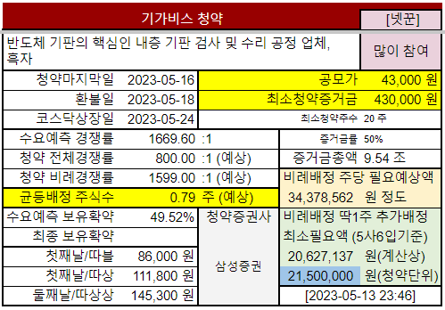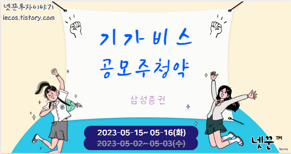 @2023-04-13 #기가비스 청약일정 연기: "5.2~5.3수" → "5.15~5.16화"