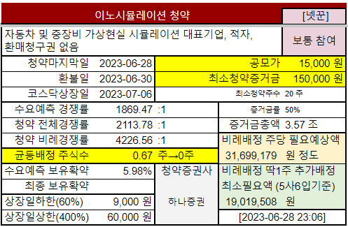 @2023-05-27 #이노시뮬레이션 (어제)증권신고서정정으로 일정연기: "6.7~6.8목" → "6.27~6.28수"