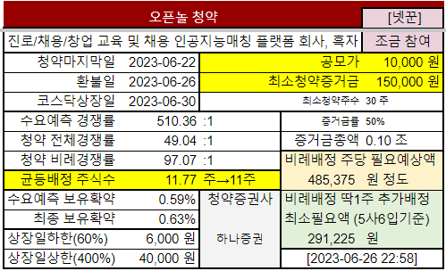 @2023-06-19 #오픈놀 상장예정일: 2023-06-30 (38사이트,IPOstock) (Pstock사이트는 정보없음)
