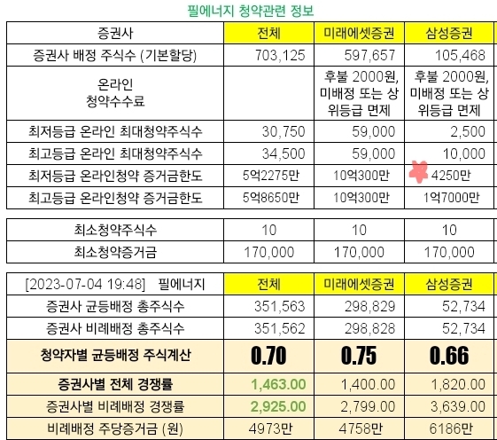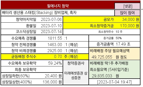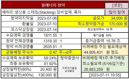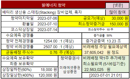 @2023-07-01 #필에너지 상장예정일: 2023-07-14 (변경된 일정만 반영하고, 예상치는 그대로 유지했습니다)