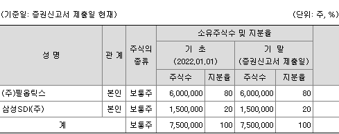 주주는 두 회사밖에 없습니다. #필옵틱스 #삼성SDI (8:2 지분이고 필옵틱스가 최대주주)