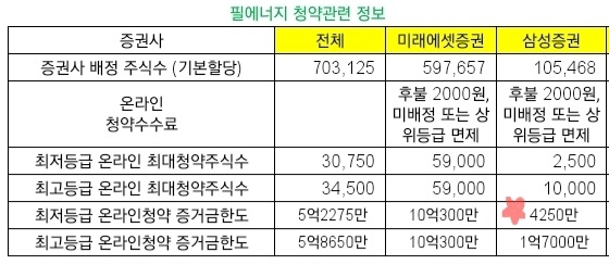 - 중복청약건수: 미래에셋증권 2352건, 삼성증권 3078건