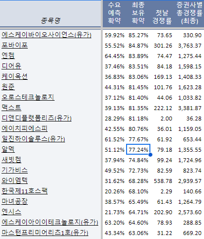 - 보유확약 51.12% (21년이후 296여건중 10위)