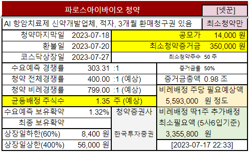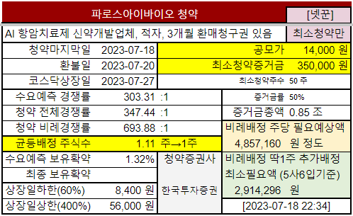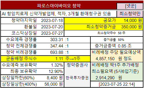 - 공모가: 14,000원 (=공모가 밴드 하단)